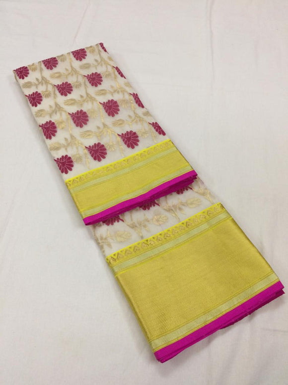 WHITE COLOR ORIGINAL AUTHENTIC PURE KATAN SILK SAREE FOR WOMEN -SAKSSO001W