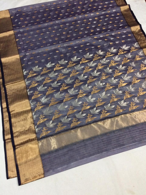 WILD LILY,AUTHENTIC HANDWEAVED GREY KATAN SILK SAREE FOR WOMEN-SAKSS001G