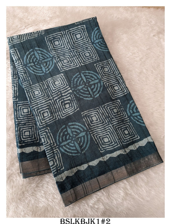 Sanaaya , Batik Printed Semi Tussar Silk Saree with Blouse-KIA001STSA
