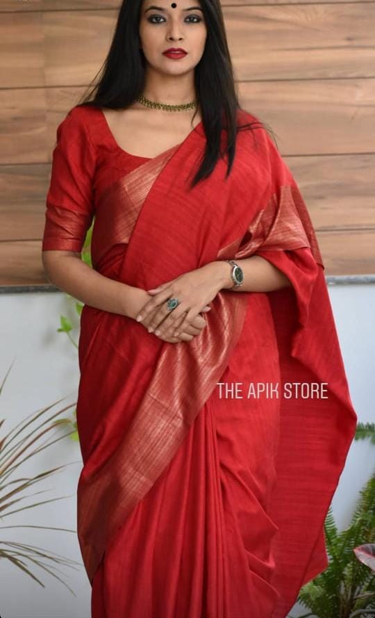 Semi Tussar silk saree with Big Border 6 inches Copper Zari-21ETTSS01R
