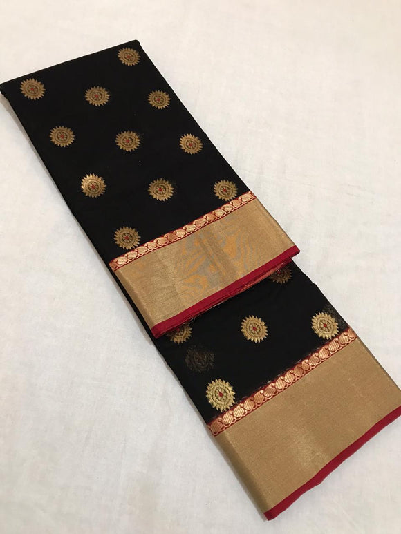 Exclusive Banarasi soft cotton silk Paan Almond Buta Saree with running brocade blouse -MOEFW1001