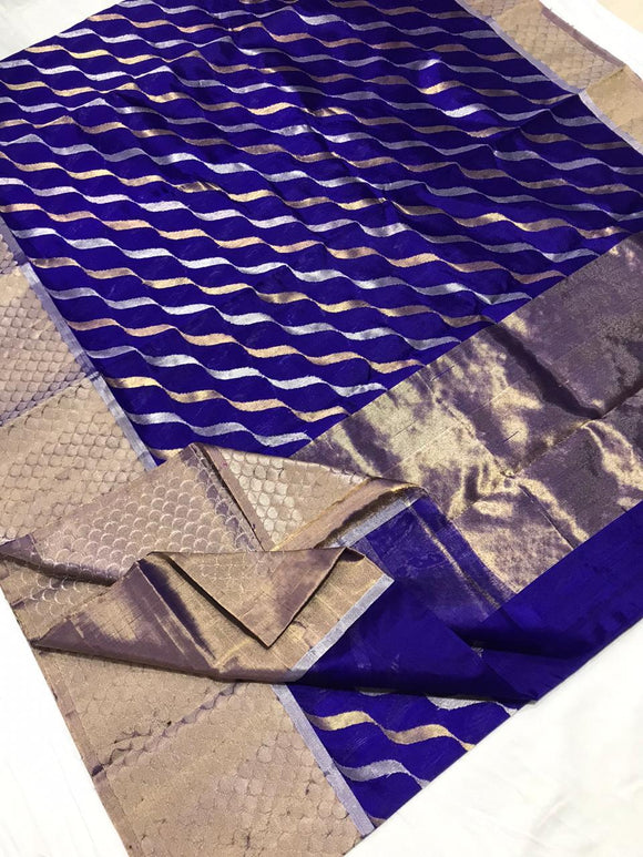 GOLD & SILVER WAVES ORIGINAL AUTHENTIC CHANDERI SILK AND COTTON SAREE FOR WOMEN-SACS0012