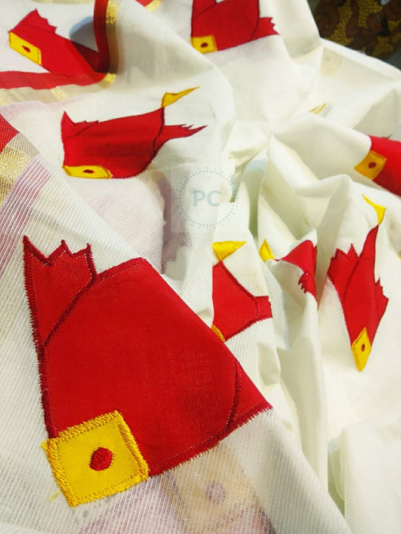 Bangladeshi Tant Cotton Applique Work Saree with contrast Blouse-21ET001WRF
