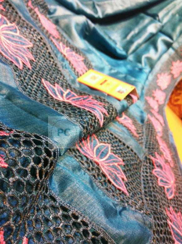 Twine Cutwork on Korean Tussar Silk Saree with Blouse for Women-KIA001KTS