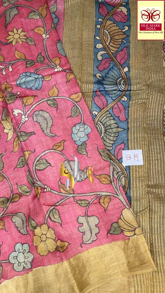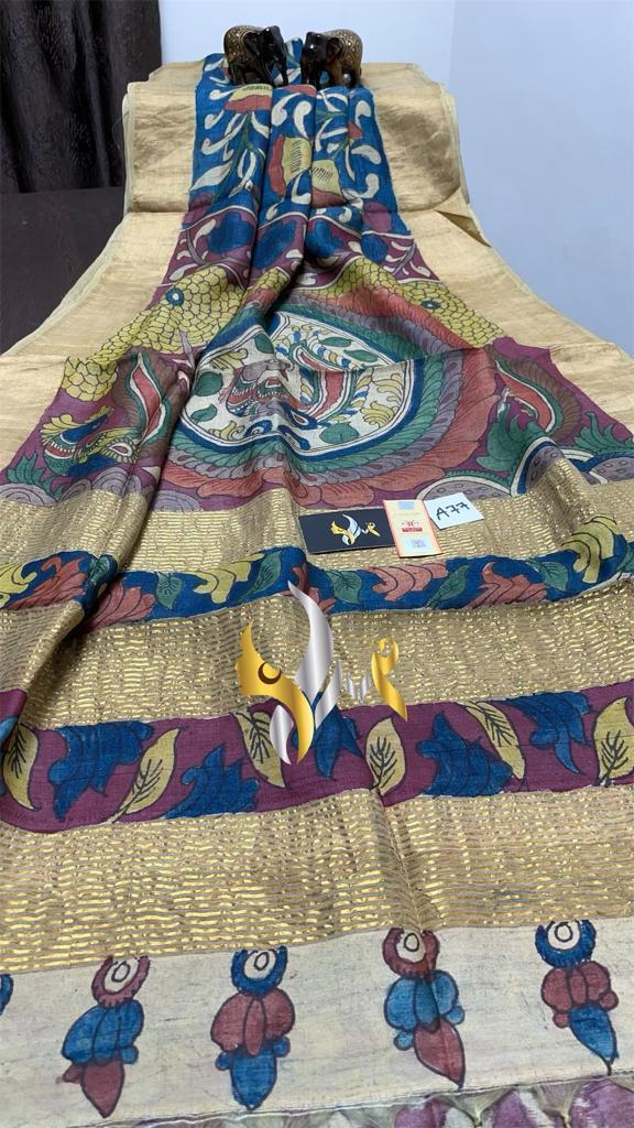 ORIGINAL PEN KALAMKARI HAND PAINTED ON PURE TUSSAR SILK SAREE -PDSPKTS001