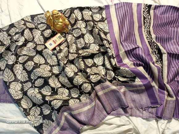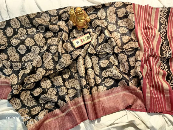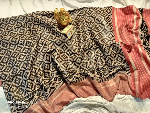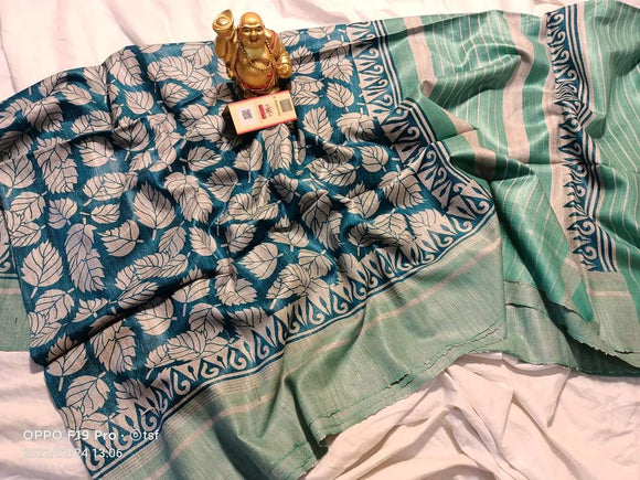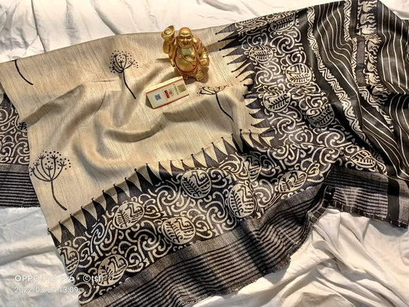 HARSHA , ELEGANT TUSSAR GHICHA BLOCK PRINT SAREE FOR WOMEN -TSS001D