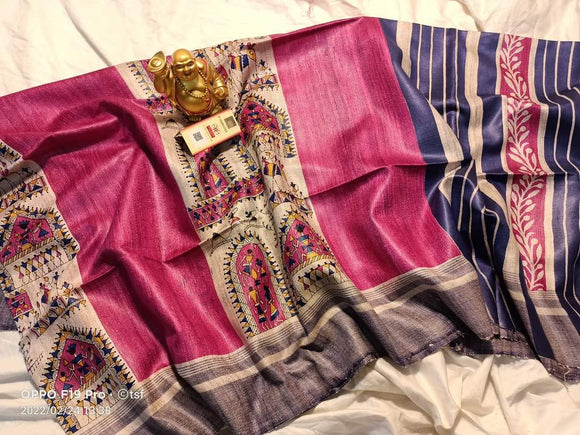 Traditional Madhubani Hand painted Tussar Gicha Silk Saree -LORD001TG