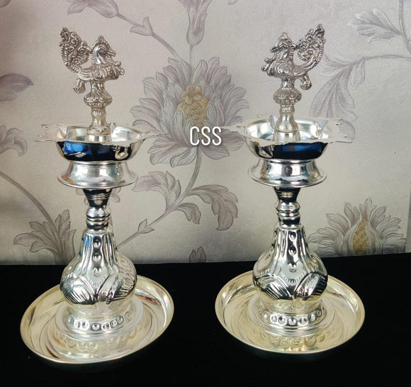 German silver special unique design deepam with pure silver replica model With peacock head Life time usable