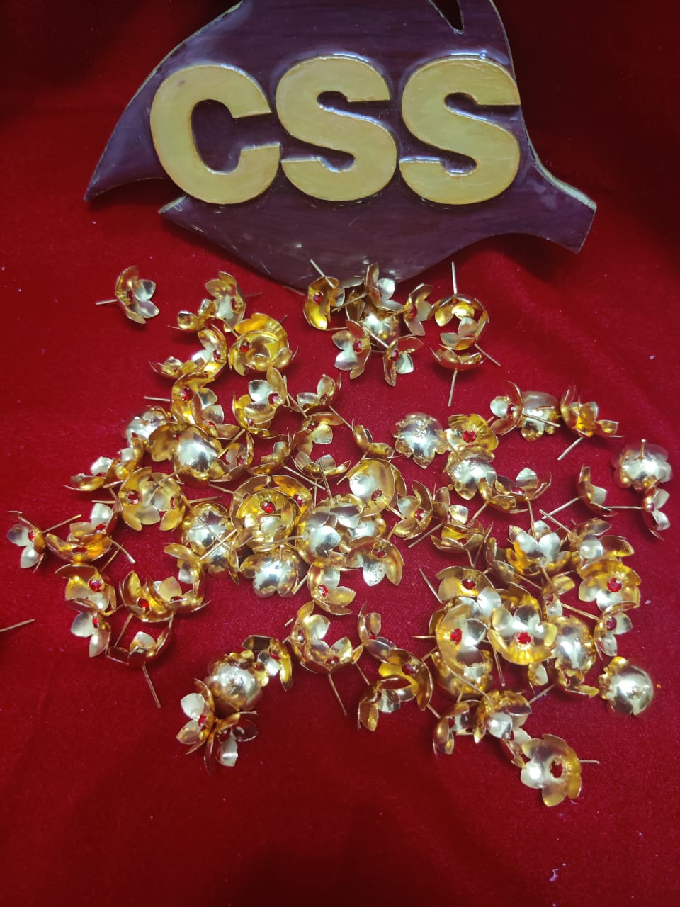 108 GERMAN SILVER GOLD FINISH PARIJATHA FLOWERS WITH RED STONE-CZYPF001G