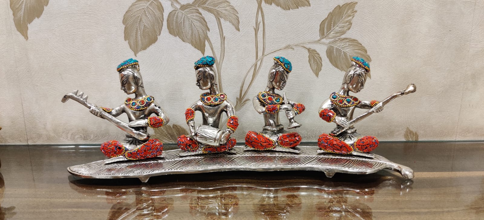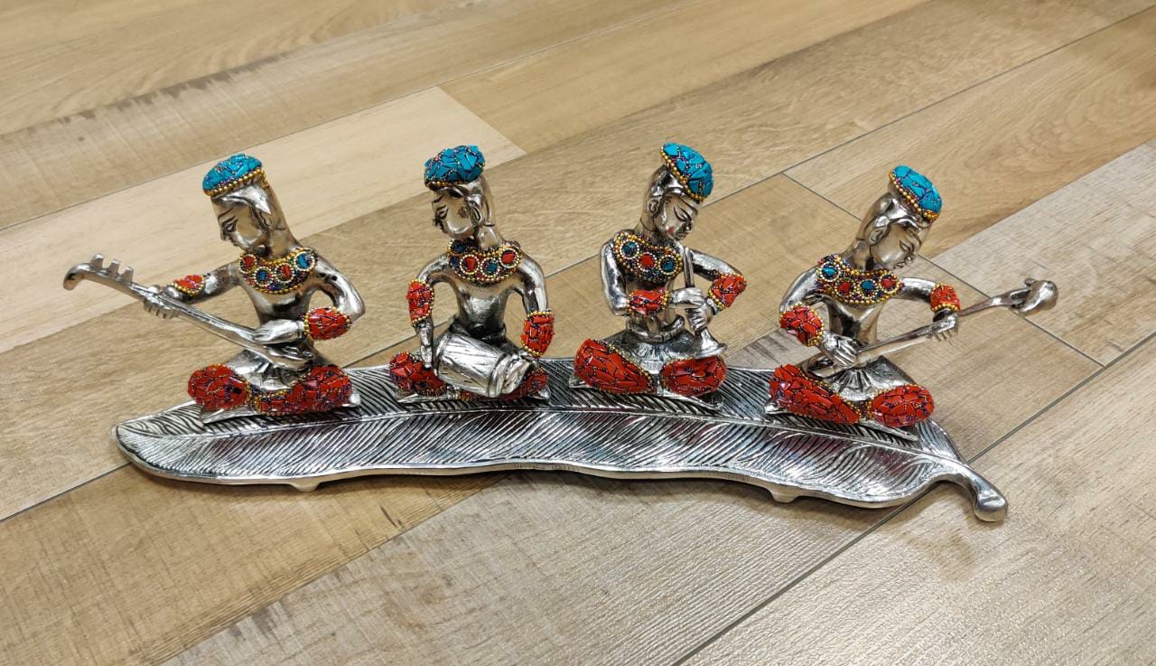 New German silver musicians on leaf with beautiful semi precious stone work on it !!