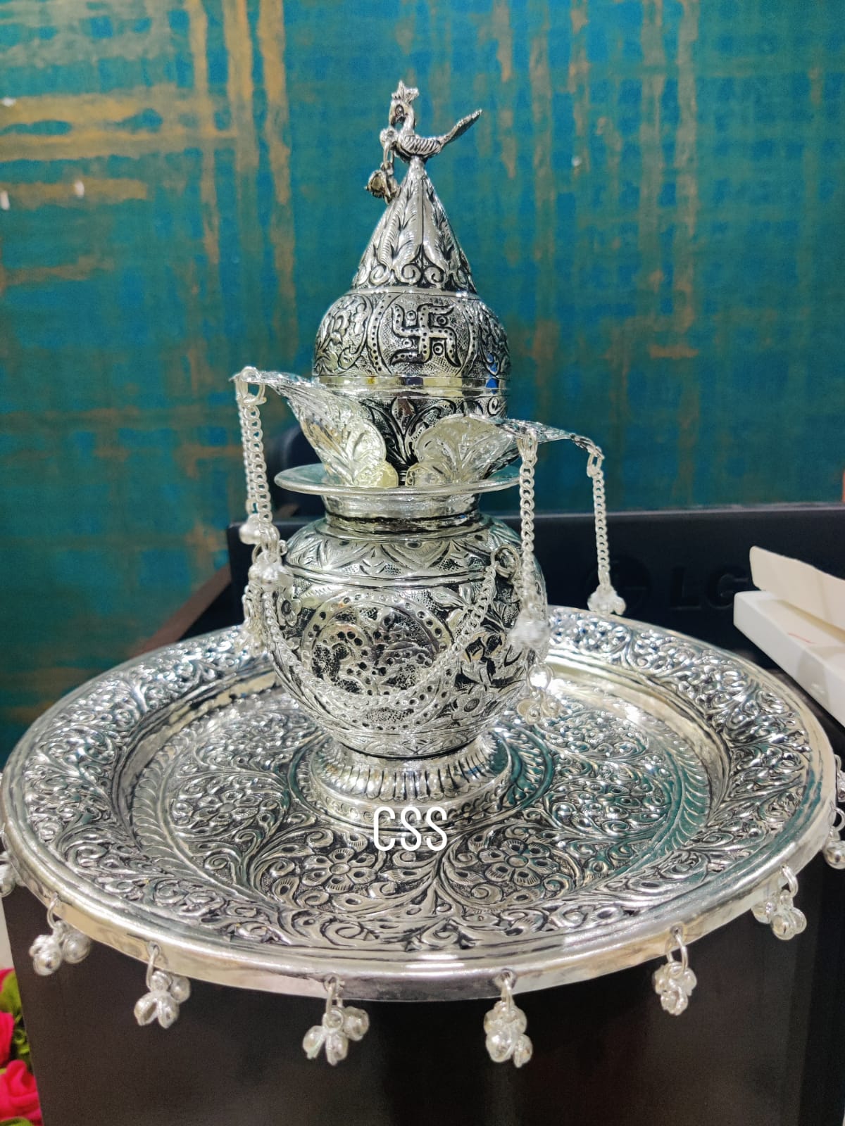 Size of Antique Finish Gungroo Plate -11 inches With Kalash