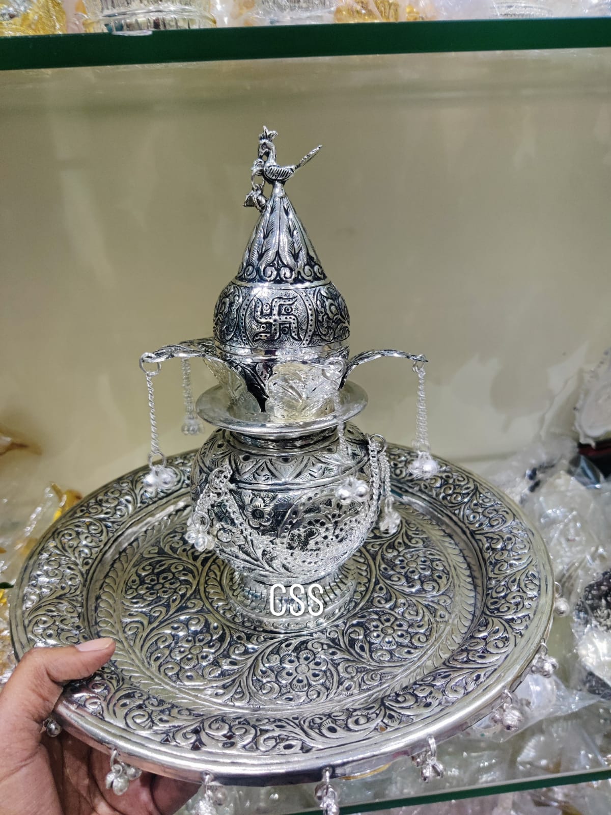Mayurika , German Silver Hand Engraved Peacock Design Urli for Decoration -MK001PU