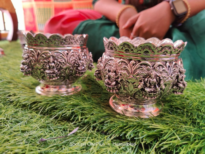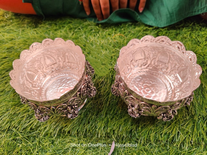 Mandakini ,Pair of 2 Antique German silver washable limited edition exclusive Asthalakshmi Design Big Size Prasadam Bowls-SILI001PBB