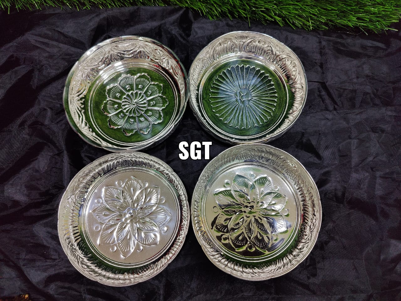 SET OF 4 , GERMAN SILVER URLI PLATES FOR PUJA PURPOSE