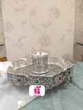 Mayurika , German Silver Hand Engraved Peacock Design Urli for Decoration -MK001PU