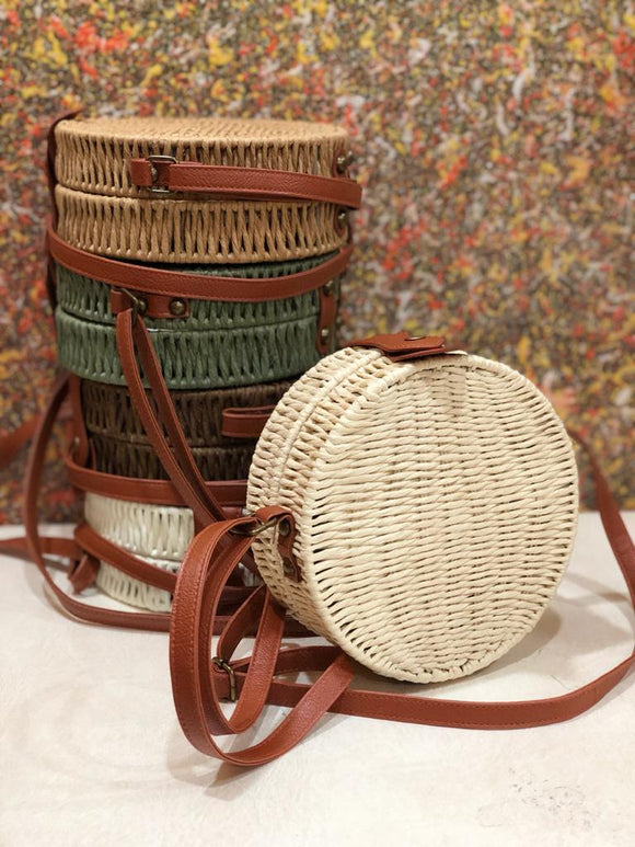 THE ROUND SHAPE BAMBOO ARMY SLING BAG FOR WOMEN -SKBSSQ001R
