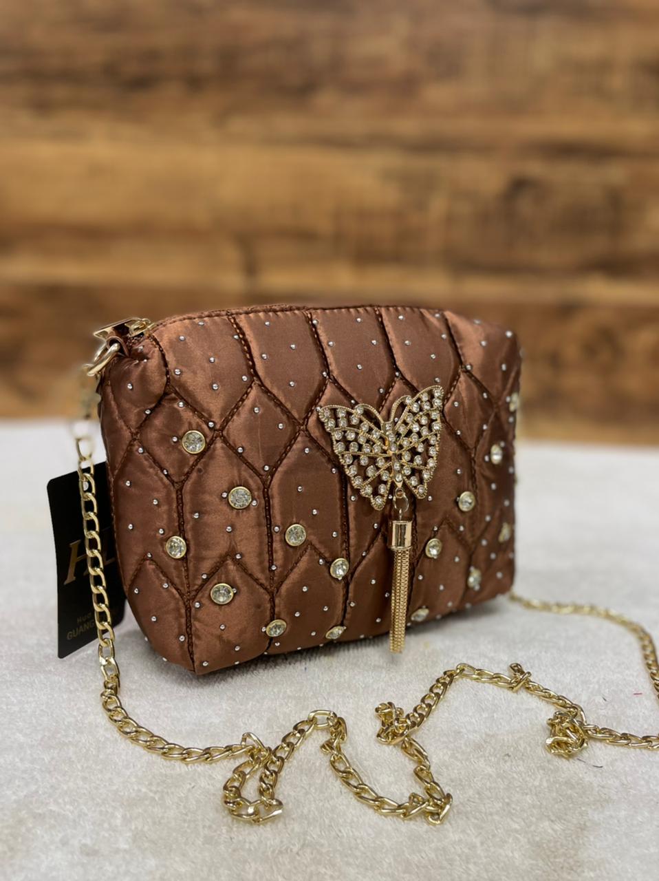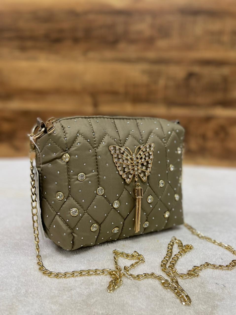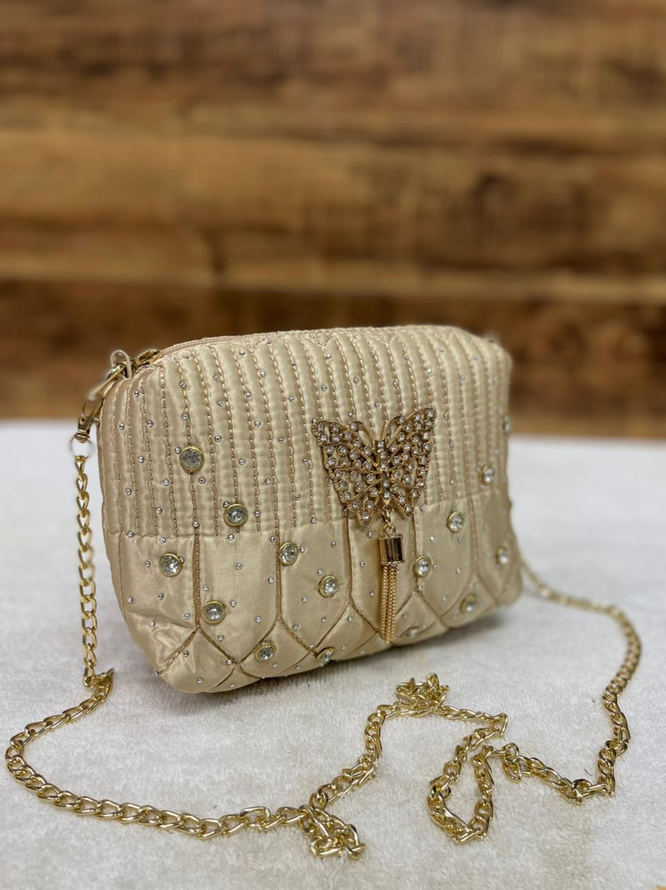 GOLDEN BUTTER FLY SATIN SLING BAG FOR WOMEN-SAFFSB001