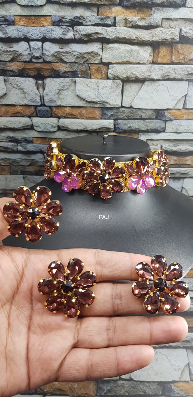 FASHION STONES CHOKER SET WITH MATCHING RING COMBO-SHSHCOCSW001