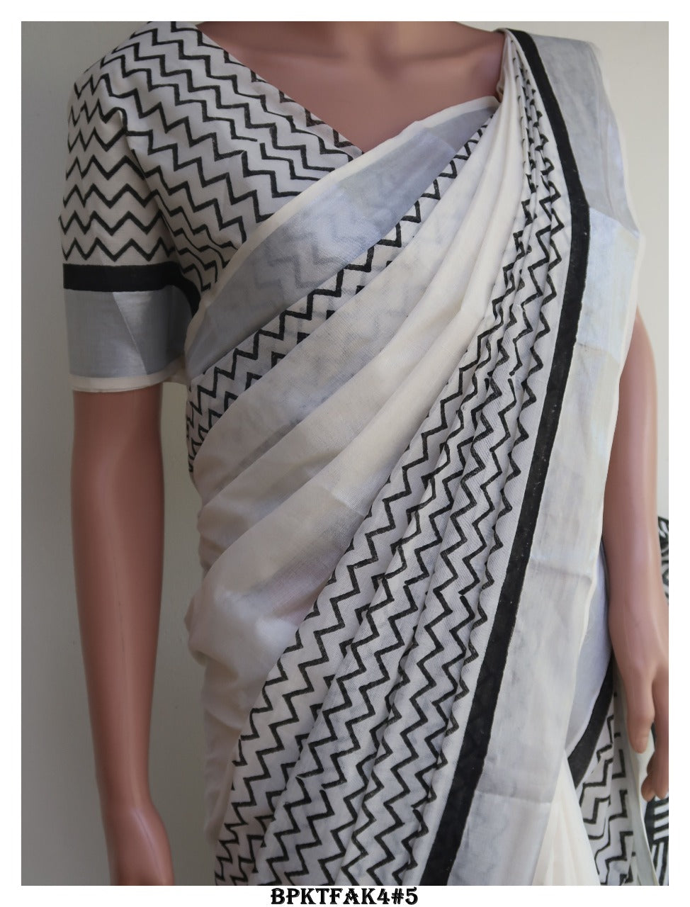 Hand Block Printed Kerala Cotton Saree with Blouse Piece