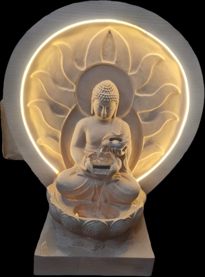 Lotus Buddha Fountain with Surya Chakra for Home Decor -ANUB001SCLB