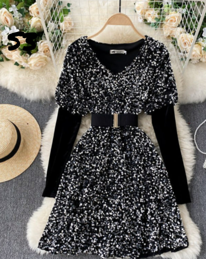 BEAUTIFUL SEQUINS VELVET SHORT DRESS FOR WOMEN -RYSVD001