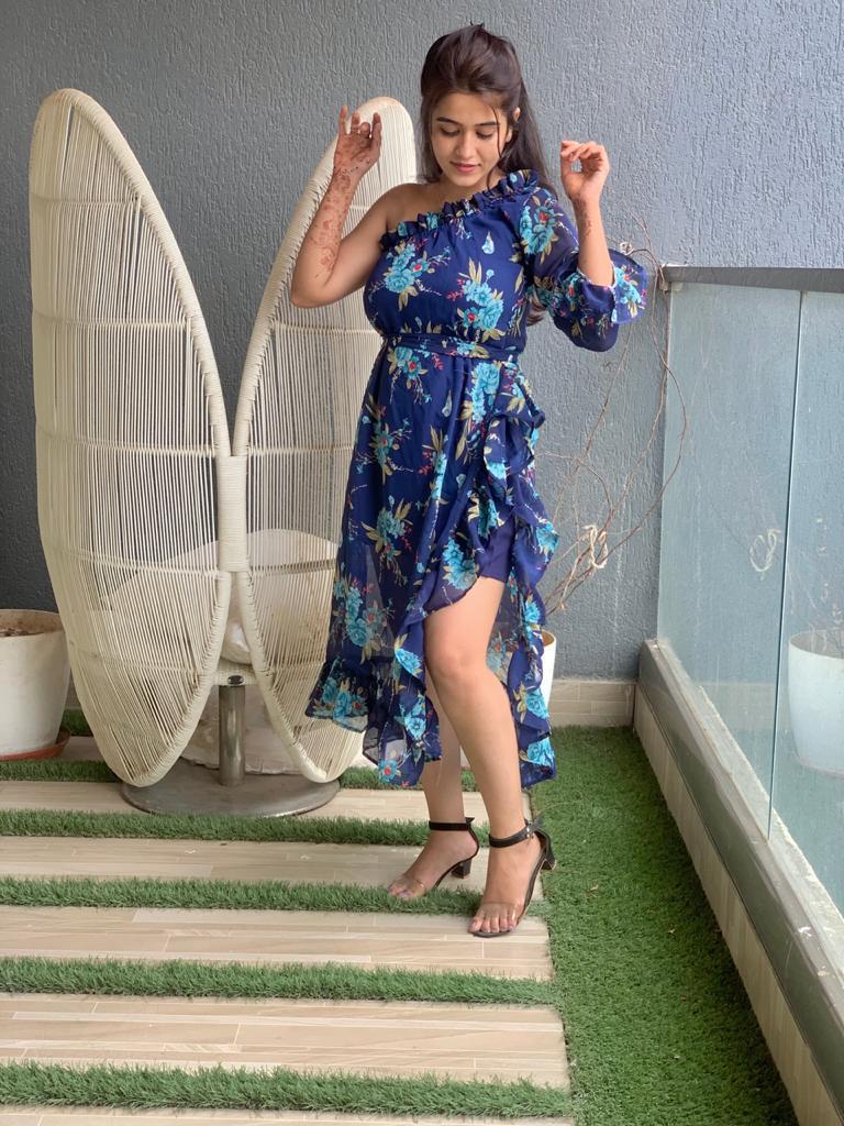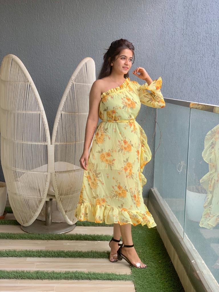 TRENDY FANCY CHIFFON FLORAL DRESS WITH FRILLS FOR GIRLS-KAWD001