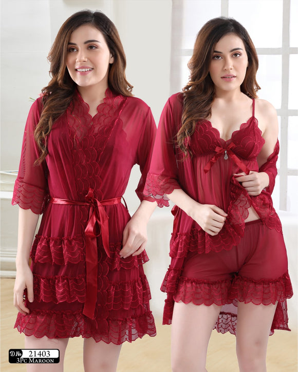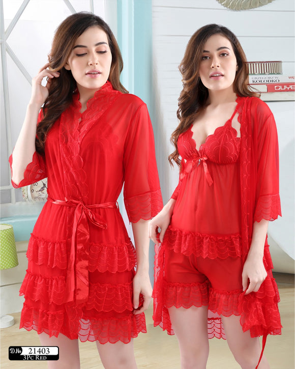 RED COLOR 3 PIECE FANCY SEXY LINGERIE FOR WOMEN-SKDSL001R