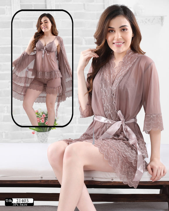 SKIN COLOR 3 PIECE FANCY SEXY LINGERIE FOR WOMEN-SKDSL001S