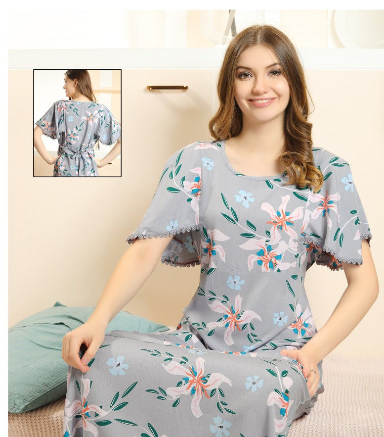 Luxury Premium Quality Rayon Twisted Cotton Long Nighty for Women -LYF001LNSD