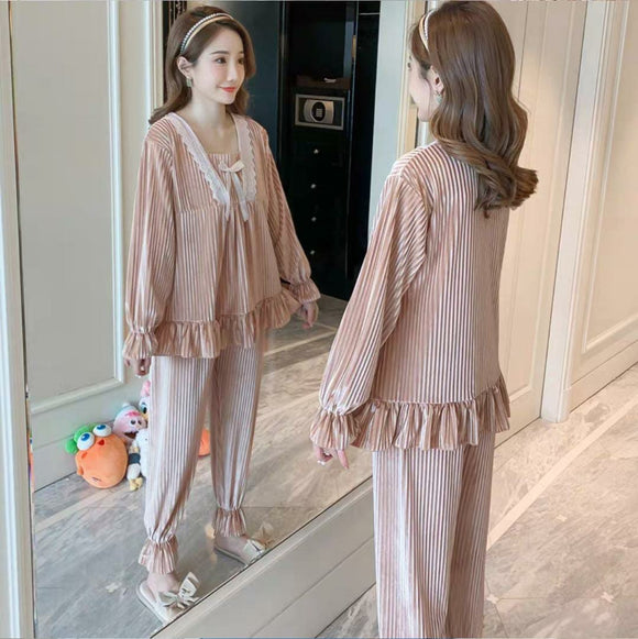 Beautiful 2021 Elegant Pajamas Set Cute Winter Long Sleeve Leisure Sleepwear Velvet Nightwear -LRVSW001B