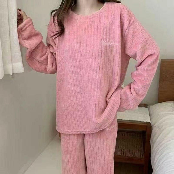 Pink Beautiful Women Pajama Sets Flannel Solid Plus Velvet Thicker Home wear -PANK001PK
