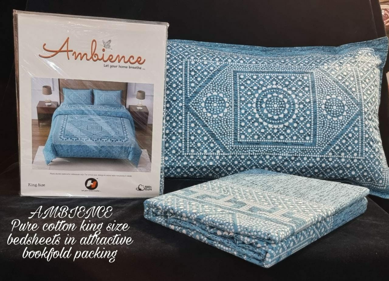 AMBIENCE Bed-sheets in king size with unique designs. These cotton bed-sheets are skin-friendly and available in King size 100*108