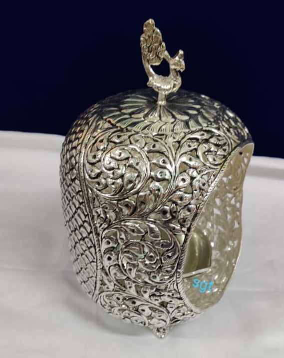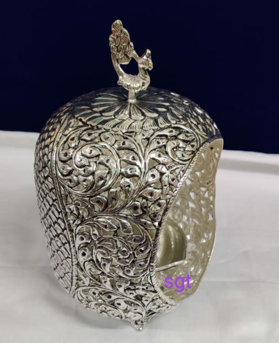 ANTIQUE FINISH GERMAN SILVER AKHAND DIYA FOR PUJA -SGTAD001