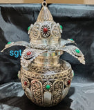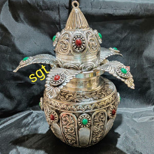 Antique Finish German Silver Mangal Kalash with Stone work-SGAFK001
