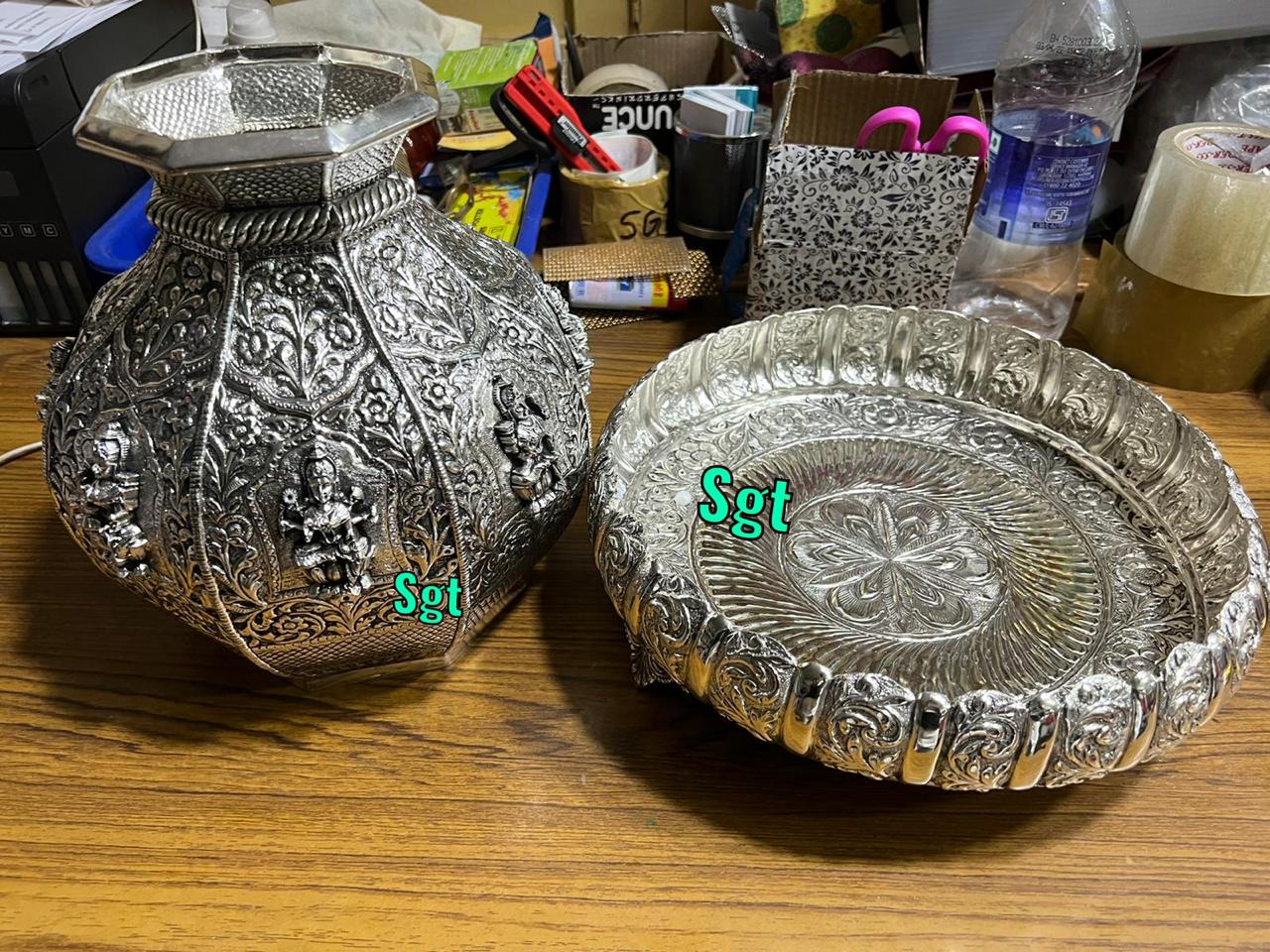 Antique  finish German silver washable kodapan  and  urli plate with legs-SN001KU