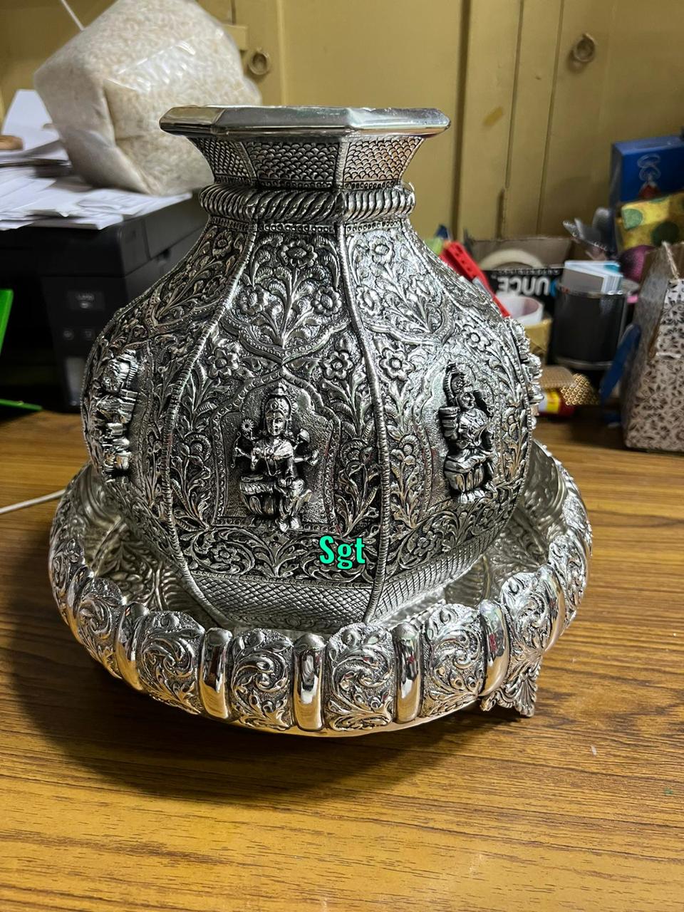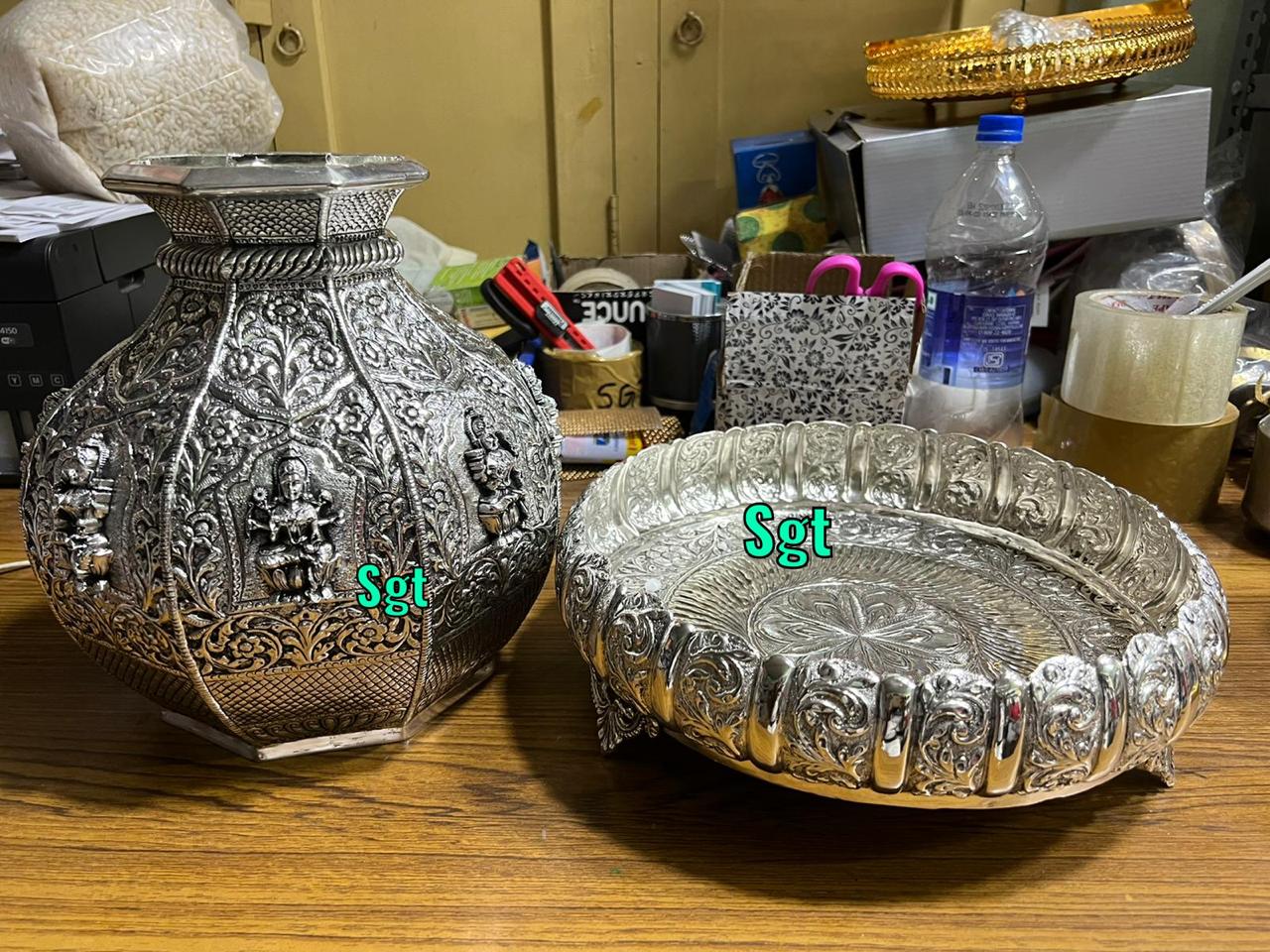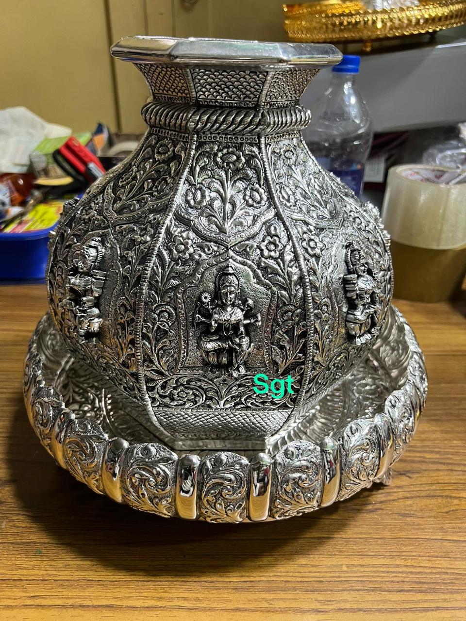 Antique finish German silver washable kodapan and urli plate with legs-SN001KU