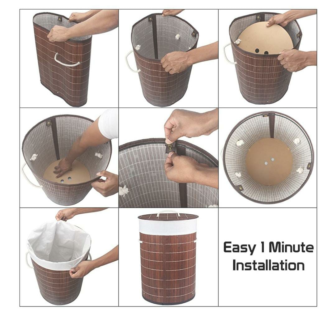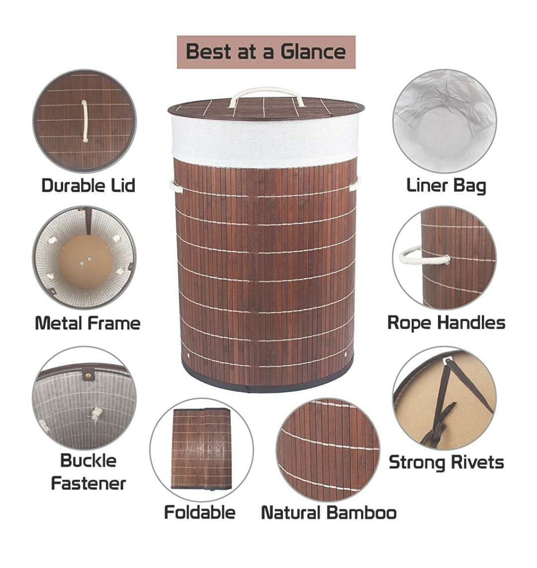 Foldable in Box packingAll-Natural Bamboo Laundry Hamper with Lid, String Handles and Removable Liner, Foldable Storage Basket, Easily Transport Laundry Bin
