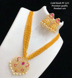Bead Necklace with Stones Pendant and Jumka with Pearls