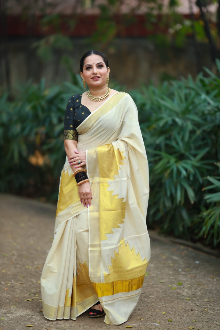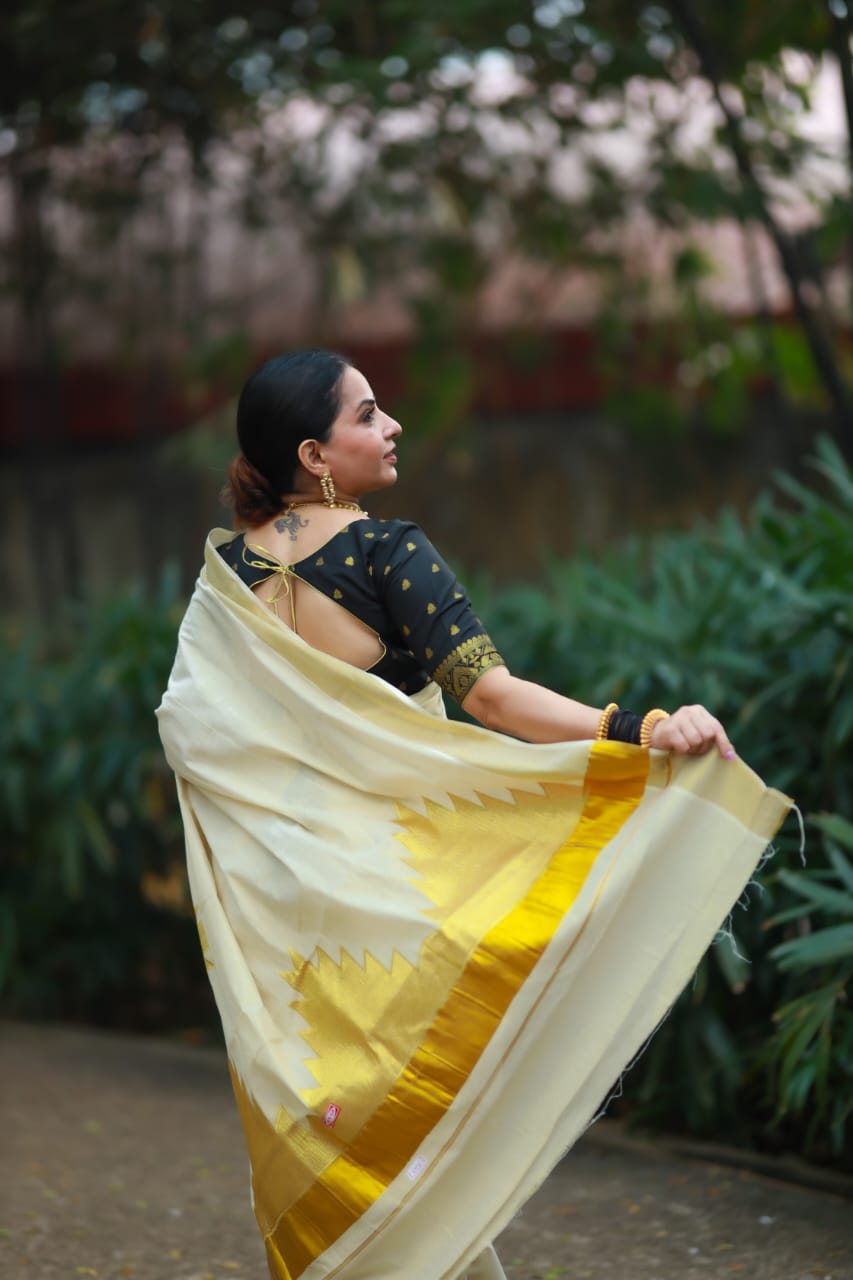 Beautiful Golden tissue temple motifs Tissue saree for Women -SAHE001TM