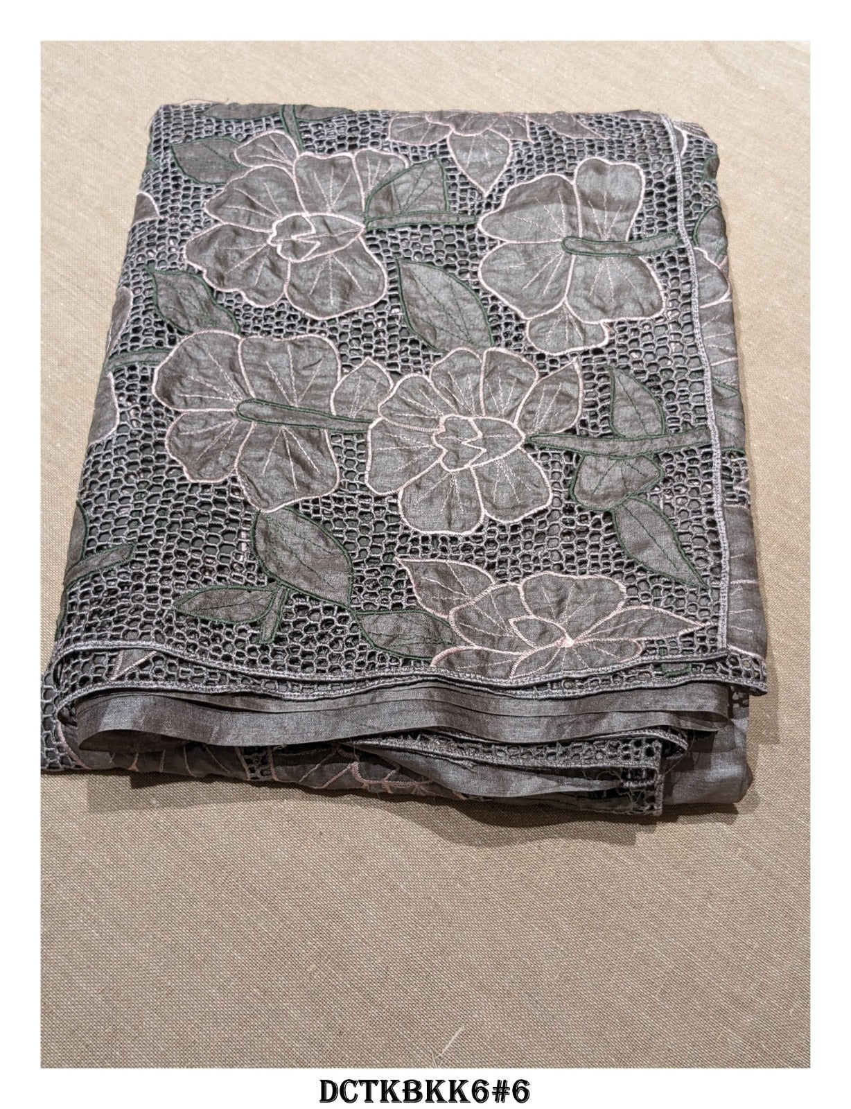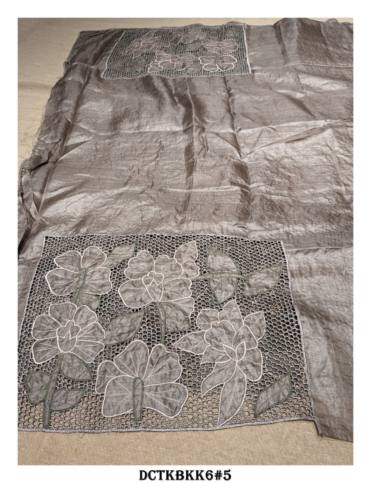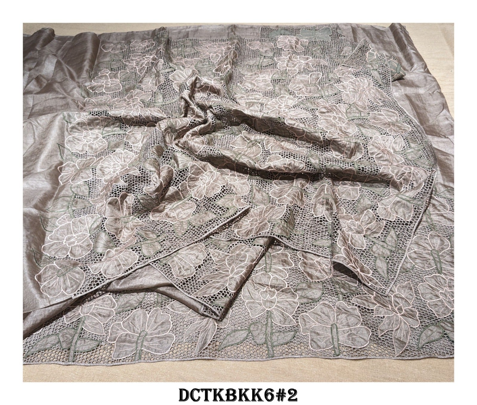 Beautiful Heavy Cutwork on Desi Tussar Silk Saree with Heavy Cutwork on Blouse Piece-KIA001HCTS