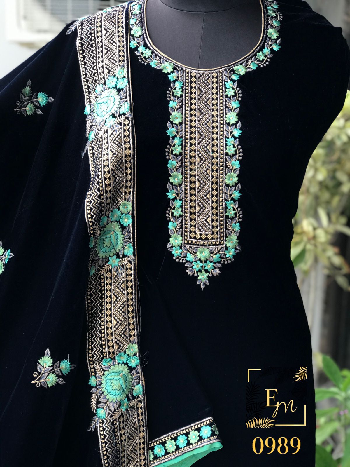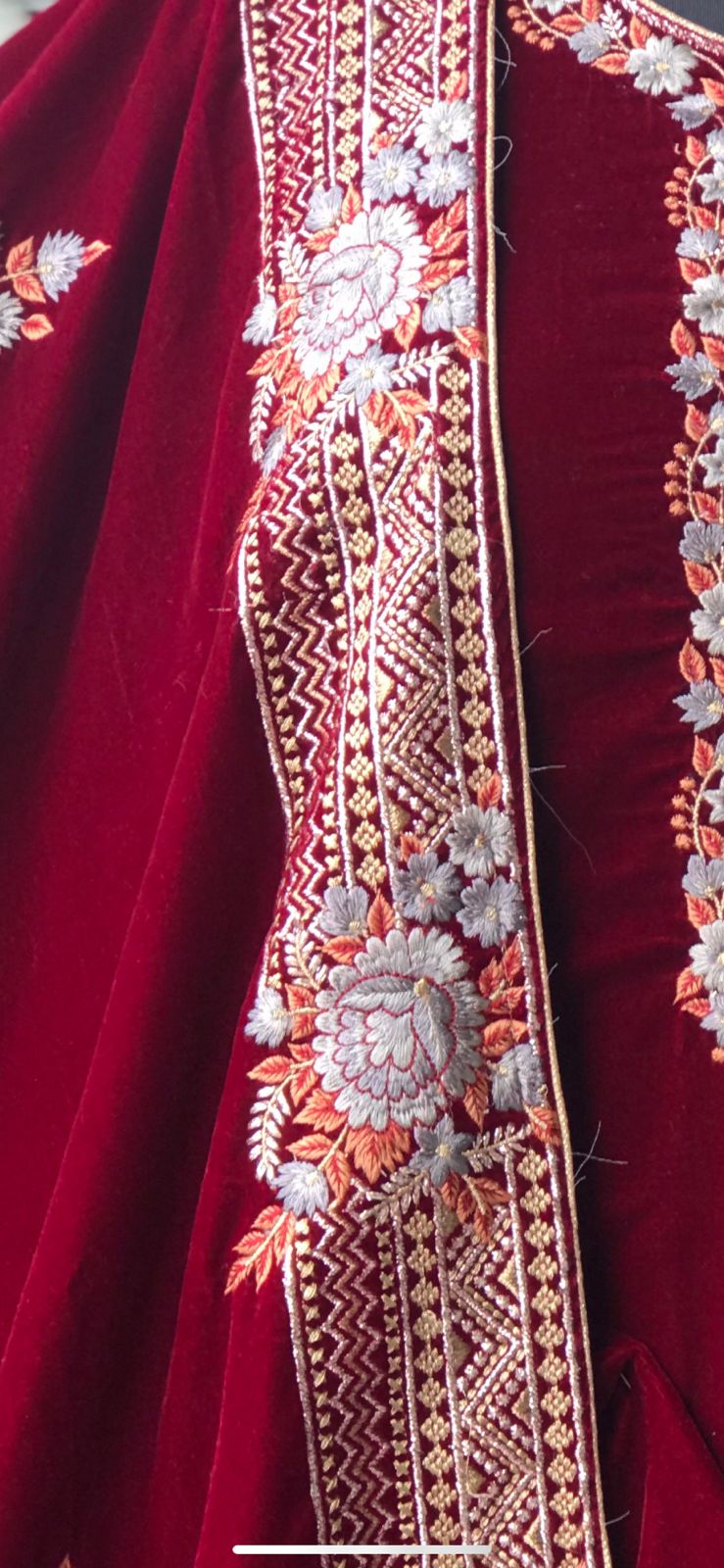Fabric : Pure VELVET SUITS embroidered Thread work