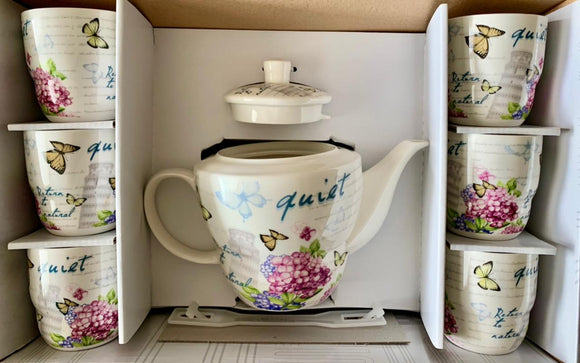 BIRD WING, 7 PC FLORAL PORCELAIN TEA SET -PPADTS001