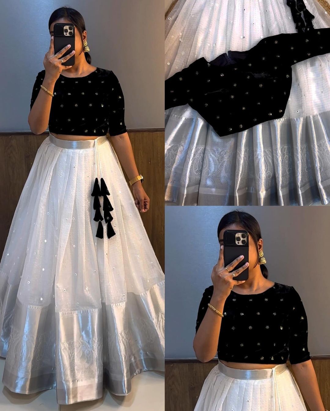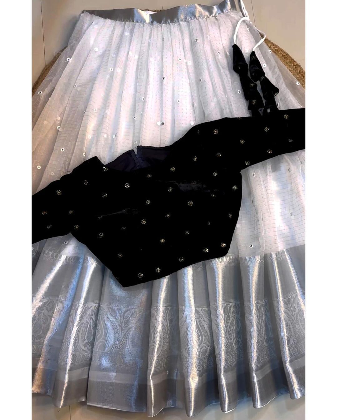 Black and White Organza Lehenga with Velvet Top -DF4001BWL