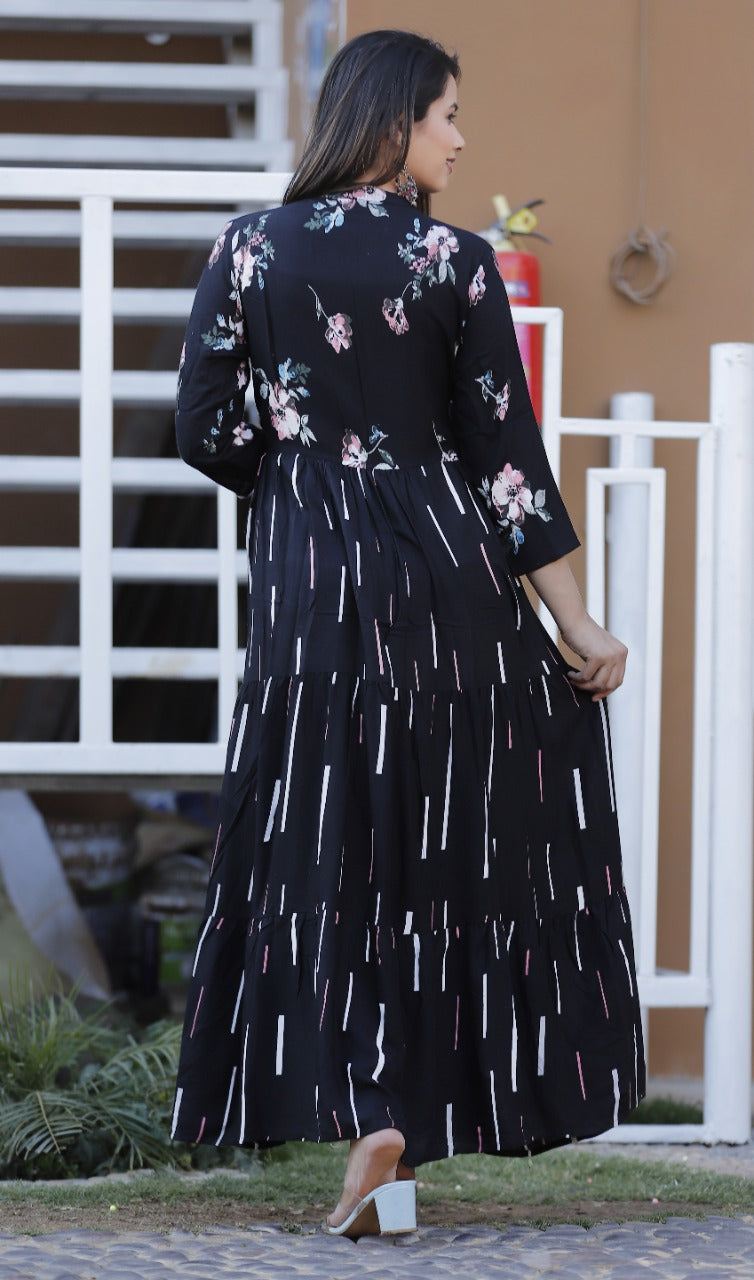 Black Color Rayon Long Kurta for Women -LAPS001(Available in size upto 7 xl)