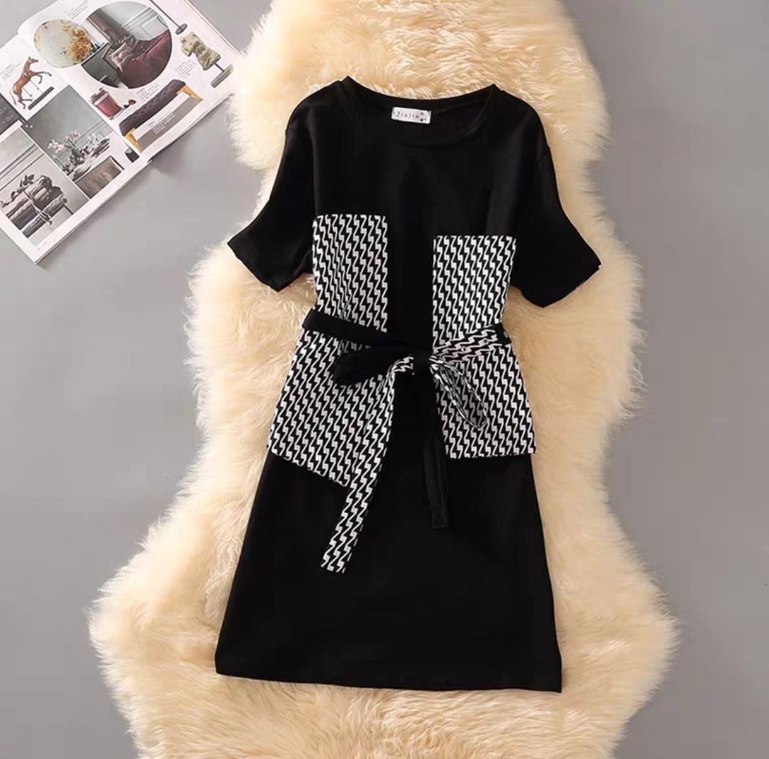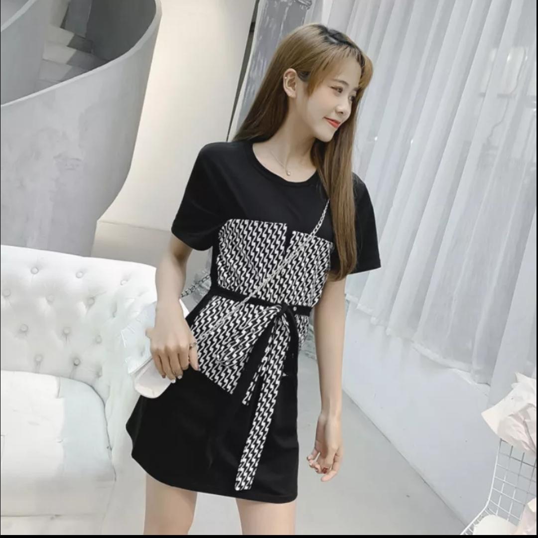 Beautiful Summer 2019 new Korean loose strap-on waist middi dress