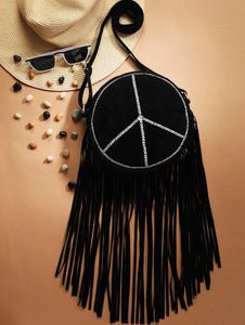 BLACK PEACE SYMBOL SLING BAG FOR WOMEN-JCPSB001