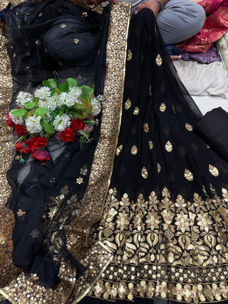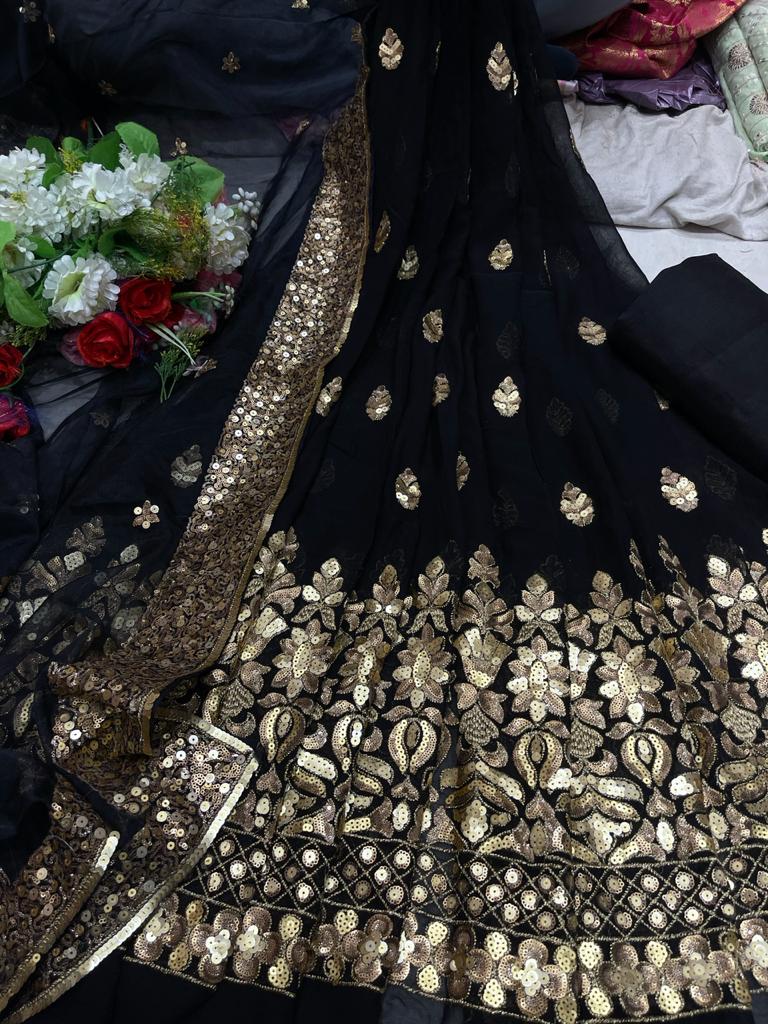 BLACK SEQUINS WORK GEORGETTE SALWAR SUIT MATERIAL FOR WOMEN-FASHSSSM001