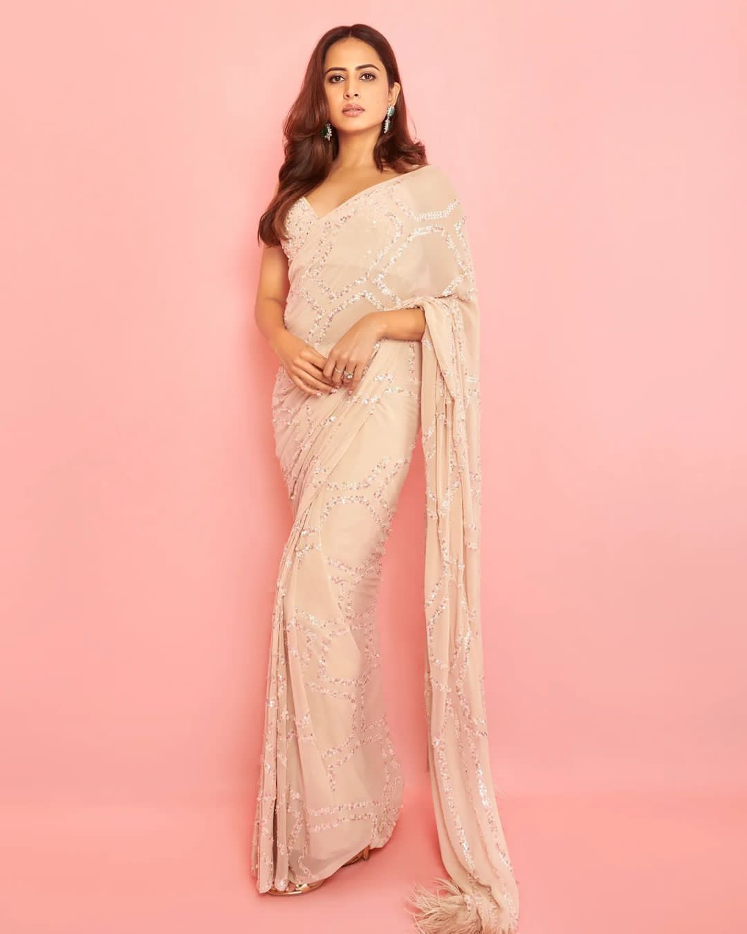 Classic and elegant, this saree will be a perfect addition to your ethnic wardrobe, offering a soothing and pretty vibe the adornment of sequins  work  makes it irresistable !!