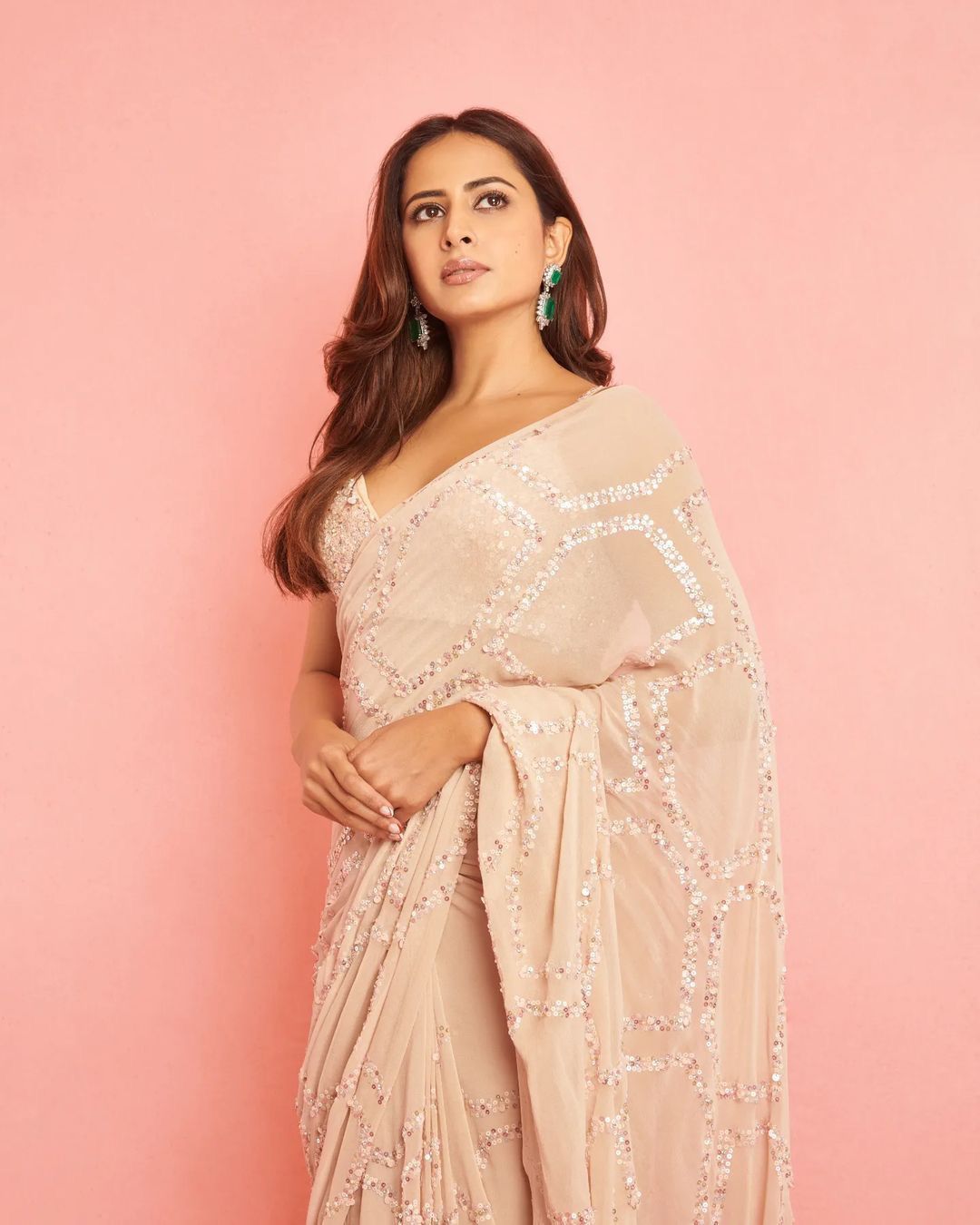 Bollywood Celebrity Rakul Preet Inspired Sequins Saree for Women -MOE001BRRP