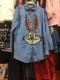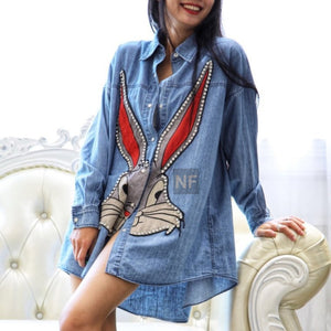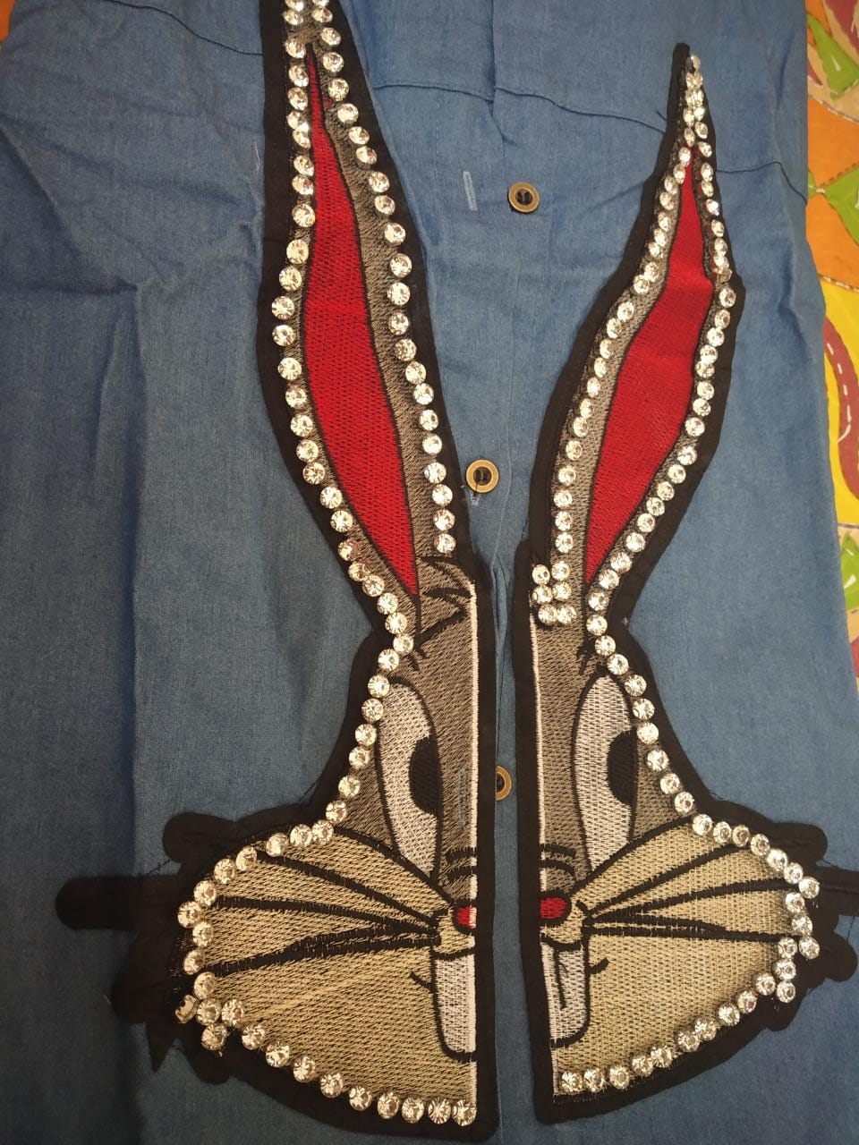 Bunny design with sequins and thread work DENIM TUNIC/ Tops for Girls.